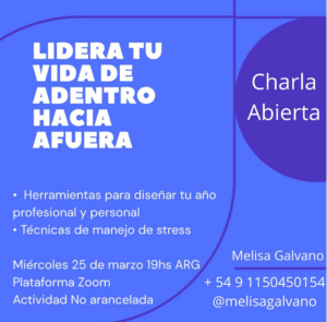 La charla estará a cargo de Melisa Galvano, quien acompañará este encuentro desde una mirada cercana y práctica, facilitando herramientas aplicables desde el primer momento.